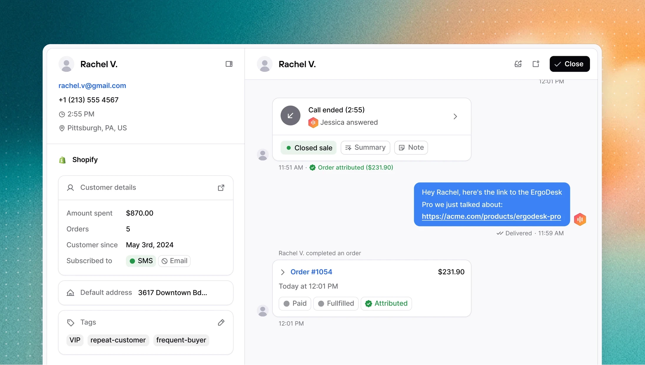 When a customer asks about a product, your AI agent can now text them its exact link (including the specific variant) while the call is live. Previously, agents could send tracking links but didn't always have access to accurate product URLs. That's now fixed, along with improved instructions for how the AI searches the catalog, so it handles edge cases (like empty search results) more reliably.